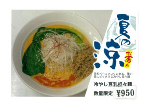 夏限定!冷やし豆乳担々麺始めました。